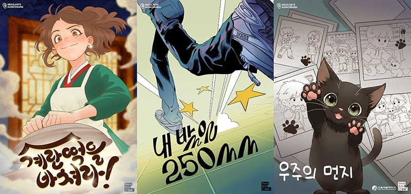 ▲기미상궁이 된 주인공의 미션을 그린 퓨전 사극 <계란떡을 바쳐라!> ▲신비한 신발로 서로의 삶을 체험하게 되는 판타지 드라마 <내 발은250mm> ▲검은 고양이 ‘먼지’와의 만남을 중심으로 펼쳐지는 따뜻한 성장 이야기 <우주의 먼지> 등 공개된 세 작품은 향후 밀리의 서재, 오디언소리, 애플뮤직, 윌라 등 주요 오디오 플랫폼에서 정식 발매될 예정이다.